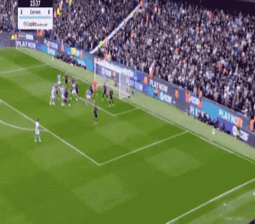 下半场开始后,曼城攻势不减,第58分钟,福登策动进攻,奥莱利边路传中,哈兰德高高跃起,头槌破门。
