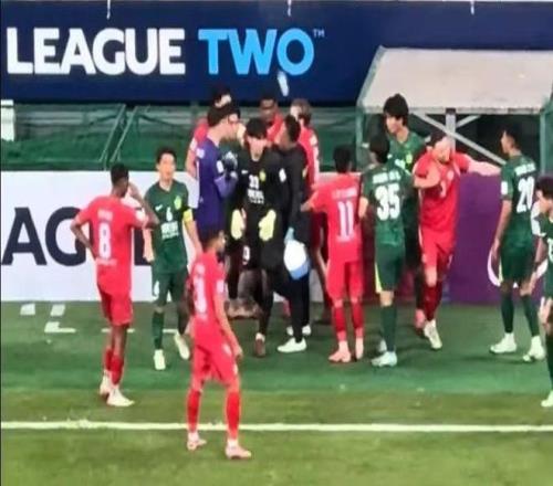 随后,双方球员也爆发了大规模的冲突,甚至观众席上的球迷也参与进来,帮助主队球员,并有球迷从看台上朝场上扔下水瓶,并砸到河内公安球员,而这名被砸到的球员,为发泄不满怒踢球场广告牌。随后,主裁判为控制场上局势暂停了比赛,就冲突与助理裁判和第四官员进行了交流,并最终给国安球员吴少聪、王子铭以及对方的7号球员出示了黄牌,至此这次冲突才被控制住,比赛也最终圆满结束。