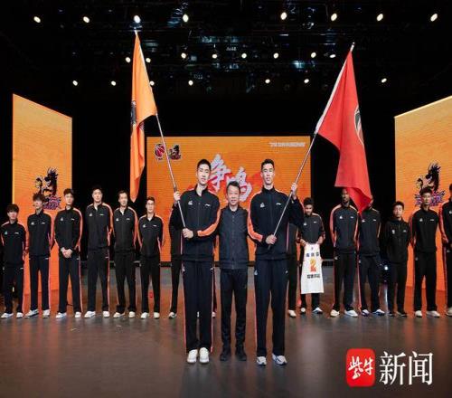 现场授旗环节中,江苏省体育局篮球运动管理中心主任胡卫权将象征队伍使命与荣誉的旗帜郑重授予队长吴羽佳和蒋浩然。在主持人的带领下,全体队员和现场观众一起大声喊出“江苏江苏、战⽃战⽃!”洪亮的口号声响彻全场,展现了全队上下齐心、剑指新赛季的决心。