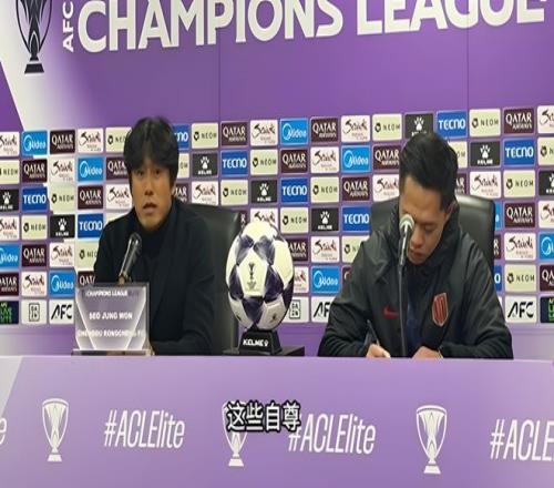 成都蓉城客场2比2战平神户胜利船的赛后,韩国籍主帅徐正源在新闻发布会上点评成都蓉城这场比赛的表现时,主动谈及中超三强排名东亚区倒数前三这一尴尬形象。