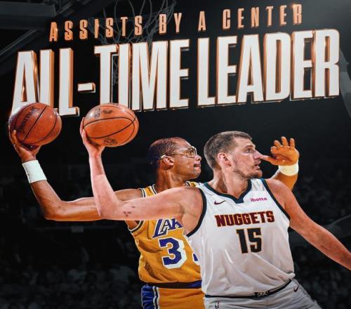 23分13助攻11篮板,约基奇又一次拿到三双,这对他而言早已是日常操作。但这个夜晚还是有着额外的意义,因为此役过后,他的生涯助攻总数超越了“天勾”贾巴尔,升至NBA历史中锋第一位。