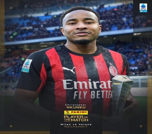 意甲第17轮,米兰主场3-0大胜维罗纳,此役上演梅开二度的恩昆库当选意甲官方全场最佳球员。