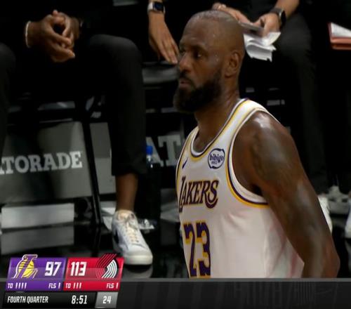 头狠狠磕到摄像机!詹皇受伤了,难怪输给开拓者,41岁老头太难了