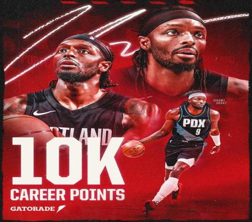 波特兰开拓者官方也向他表示了祝贺:“杰拉米-格兰特职业生涯总得分突破10000分,至此成为第47位身披开拓者队服达成此成就的球员。”
