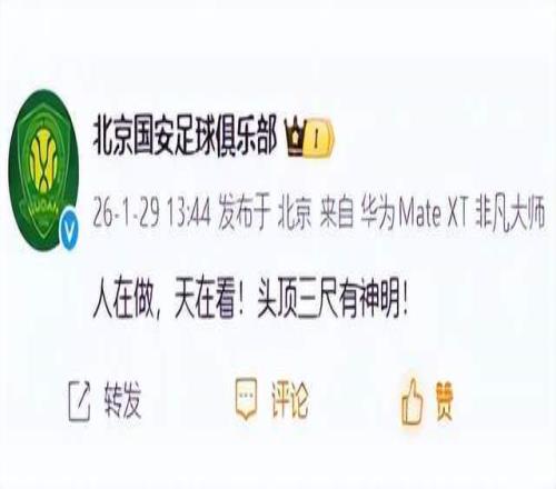 重磅罚单出炉后先横再怂:北京国安一举动像极了闫学晶