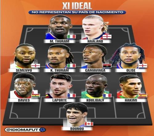 最近Idiomafut发布了“不代表出生国的最佳阵容”。哈兰德、图拉姆、奥利塞、卡马文加、戴维斯、拉波尔特、库利巴利、哈基米和布努入选。名单里最大的反差,是他们的出生国和代表国家队对不上,英格兰、意大利、法国、加拿大这些出生地和最终选择的国家队形成了明显错位。把这11个人按位置拼成一套首发,这套阵容的整体实力到底能到什么档次?