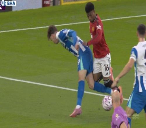 英超官方解释阿马德禁区被放倒未判点:德库耶佩先触碰到球